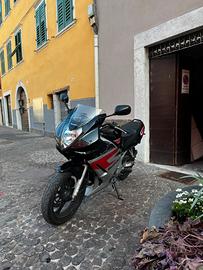 Suzuki gs 500e con carene suzuki gs500f, guidabile con patente a2, motore in ottime condizioni, lavori eseguiti: -Sostituzione guarnizioni dei carburatori -Aggiunta carene gs500f -sostituzione strumentazione(perchè la vecchia non funzionava) -sostituito cablaggio del faro anteriore. Fornisco anche codino, serbatoio, sella e parafango di ricambio, da sistemare e riverniciare.