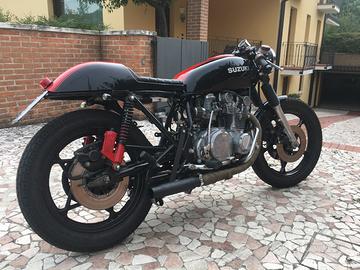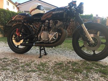 Suzuki gs 550 e Vendo per poco utilizzo! Moto in buonissime condizioni per la sua età.. Di mia proprietà dal 2017. Trasformata cafe racer da officina specializzata. -Perfettamente funzionante. -Carburatori rifatti. -pastiglie nuove -gomme 80% -revisionata -Testa retificata e cambiate tutte le guarnizioni motore nel 2019. Info in privato per altre foto se interessati