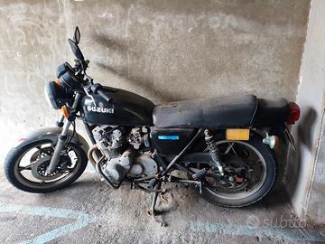 vendo Suzuki 560 anno 82. portata a casa funzionante e in ordine 10 anni fa per usarla e customizzarla ma poi tempo e altre esigenze me l"hanno fatta fermare e abbandonare sotto casa e qualche vandalo ha strappato sella e tagliato pipette . moto ferma da anni quindi da restaurare. accetto offerte. vendo in blocco non a pezzi.
