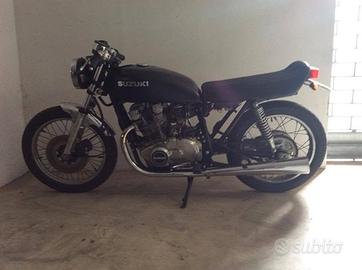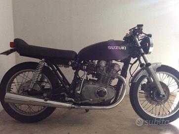 vendo per motivi familiari Suzuki GS450 1978 con carrozzeria personalizzata in vernice opaca stile cafè racer; sella originale ribassata e rifinita in fili color argento (impermeabile), manubrio accorciato, ciclistica originale, specchietto sx incluso, Blocco sterzo originale, almeno 120km con un pieno; avviamento elettrico (o anche manuale); Tagliandi certificati, numero molto ridotto di proprietari. Sostituito di recente la frizione e la batteria