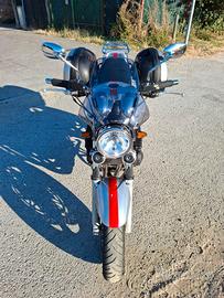 Moto tenuta con cura, tagliandata ogni anno con olio Bartdhal . Batteria nuova, trasmissione nuova. Appena gommata. Tagliando effettuato a Luglio. Revisione effettuata a Luglio. Impeccabile, qualsiasi prova. Nel prezzo sono compresi: 2 bauli + relativi telaietti, portapacchi posteriore, due cupolini di diverse dimensioni, configurabile come visibile nelle foto. Moto pronta, nessun lavora da fare