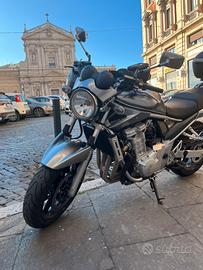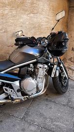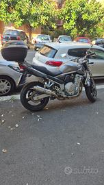 Suzuki Gsf bandit 650 del 2010. La moto é meccanicamente perfettamente funzionante, tagliandi e manutenzione ordinaria regolari, la uso tutti i giorni per casa-lavoro da Ostia al centro di Roma. Sono presenti dei difetti estetici, alcuni a causa di una piccola scivolata ( Bozzetto e graffio serbatoio(vedi foto), piccolo buchetto sella e vari graffi o segnetti di ruggine superficiale). Tagliando effettuato quest'anno e forcelle nuove. Gomme al 60%. Scarico Mivv storm omologato. Piastra portapacchi e bauletto Givi inclusi. Regalo anche cupolino originale suzuki.Nessun problema meccanico/elettronico da segnalare. Ho inserito una presa usb nel sottosella collegata alla batteria. Vendo per passaggio ad altra moto. Per qualsiasi info contattatemi pure