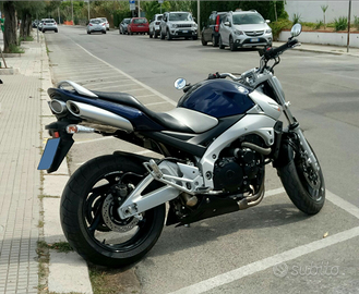 Street fighter Suzuki con motore e ciclistica da sportiva in lega leggera, posizione di guida comoda, sella ampia e confortevole, strumentazione digitale completa anche con contamarce.