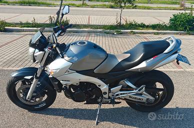 Vendesi Suzuki GSR 600 anno 04/2006 (euro 3), km 69.800, color grigio/argento, tenuta in modo impeccabile. Montati porta targa sportivo, tubi in treccia freni anteriori Accossato, frecce posteriori Barracuda, leve MZS cupolino fumè Biondi, specchietti nuovi simil carbonio e protezione telaio anticaduta. Doppia chiave. Cambiata trasmissione completa DID, dishi frizione e molle, regolatore di tensione, cambio filtri e olio Motul 7100 appena fatto. Gomme Metzler sportec M5 al 70%. Bollo pagato fino a marzo 2027. La moto va che è una bellezza, motore e carrozzeria OK. Eventuale iscrizione come moto storica. Cambio per passaggio ad altro modello. No perditempo. Prezzo non trattabile.
