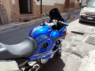Vendo Suzuki GSX 600f del 2004,io sono il secondo proprietario, sono stati eseguiti i seguenti lavori kit trasmissione, regolazione dei carburatori , cuscinetto manubrio, tagliando, copertoni al 50% con porta cellulare e carica cellulare la moto ha 34mila km,se sei interessato puoi chiamare al 3202697373.