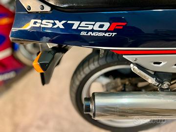 Vendo Suzuki GSX 750 F del 1989 con carene originali Km 62.400 Iscritta FMI (assicurazione storica, no bollo) Tenuta in maniera maniacale, sempre box, Meccanicamente perfetta qualsiasi prova Scarichi BUSSO dell'epoca ( molto rari ) Eseguiti di recente i seguenti lavori: - Tagliando completo - Pompa freno ant. - Revisione forcella ant. (steli nuovi ) - Pulizia e sincro carburatori - Alternatore - Gomme 99% (percorsi 1000km) - Batteria nuova Pronta all'utilizzo di tutti i giorni Vendo a malincuore poiché avendo diverse moto viene usata poco. Richiesti 2200 euro trattabili ( mille sono solo di lavori eseguiti) No perditempo