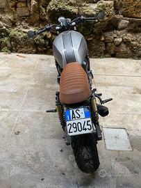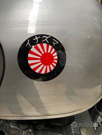 Vendo bellissimo esemplare unico di Suzuki GS X 750 Inazuma trasformata Café Racer, nel 2021, dalla storica officina specializzata di Roma Ottodrom Srl , via Pinciana 41., Serbatoio verniciato con vernice rastremata particolare e speciale con sole nascente e la scritta in caratteri giapponesi "Inazuma" in italiano "Fulmine"., Carrozzeria impeccabile , senza un graffio, Motore perfetto, appena 18000 km. revisionato nel 2022 con fattura dalla Suzuki Gambino di Palermo. Ruote Nuovissime ancora con i pelucchi tenuta gelosamente sempre in garage. Le peculiarità di questa moto sono principalmente due. La prima é quella di avere un CULT come motore!!! Il famigerato GSX 750 un motore che ha rappresentato la STORIA della Suzuki, elastico, scattante, potente, in se e per se appagante e molto divertente, adatto sia per i lunghi tragitti che per i brevi spostamenti, insomma un vero gioiellino oggi quasi introvabile reperirlo sul mercato con soli 18000 km. E perfetto come un orologio svizzero. La seconda é l'estetica!!! Questa con la Ottodrome di Roma é stata curata sin nei minimi particolari. Il gruppo strumenti Daytona il gruppo stop e indicatori molto light per non impattare, specchietti retrovisori estetici e pratici, il suo faro anteriore maggiorato dotato di una grande griglia, ma soprattutto il serbatoio rastremato e dipinto con una vernice speciale. Il grande logo riporta un sole nascente simbolo del Giappone con la scritta INAZUMA "FULMINE" rendono questa moto una vera OPERA D'ARTE UNICA nel suo genere. Vi consiglio di visionare il sito della società Ottodrom Srl. per rendersi conto della qualità e dell'originalità delle modifiche apportate alle moto trasformate, che alla fine sono dei veri e propri "PEZZI UNICI". Vendo per inutilizzo a causa di trasferimento di residenza in un Paese Extraeuropeo.