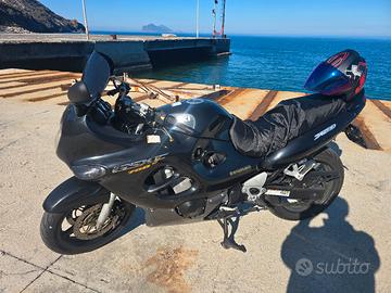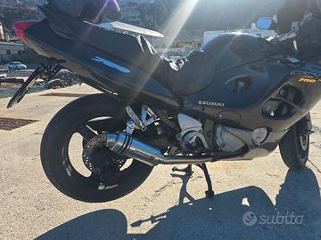 Vendo Suzuki GSX 750F KATANA anno 2001 perfettamente funzionante revisionata fino al 2028 pneumatici nuovi montati Agosto 2026, sostituite pastiglie freni anteriori e posteriori, candele al platino iridio, bobine di accensione e cavi, montato kit revisione carburatori completo, scarico della Dominator montato agosto 2026 in più do il suo scarico originale. La moto è stata ferma per oltre 20 anni ed ha solo 8.900 km circa, presenta piccoli graffi sulle carenature per cadute da ferma e i normali, segni del tempo. Do anche numerosi ricambi tra cui filtro olio, aria e 4 litri olio motore per tagliando completo, paraoli nuovi per le forcelle anteriori, serie di pastiglie freni nuovi anteriori e posteriori, montato cupolino nero, in più do anche uno trasparente nuovo, frecce anteriori di colore scuro e lampade a led, pompa freni anteriore radiale, sostituzione olio freni. Non accettato permute di nessun genere. Astenersi affaristi e perditempo.