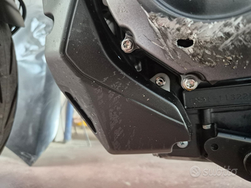- Motore e cambio (12000 km circa, sempre tagliandata in suzuki ogni 6/8000 km) come si evince dalle foto c'è da cambiare il coperchio dello statore che si è bucato con la caduta.