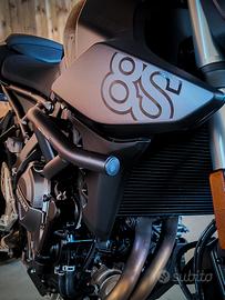 Altroché MT-07 o Z650, qui si parla di altro. Agile, scattante e maneggevole. È la moto ideale per chi è alle prime esperienze oppure cerca la moto snella e confortevole per tutti i giorni, ma che sa esprimere anche grinta. Non è la così detta moto di passaggio. Garantisce spazio anche per il passeggero. Monta impianto frenate Nissin con mono ammortizzatore post. regolabile in precarico, forcella a steli rovesciati KYB, Quick shifter bidirezionale, specchietti endbar Barracuda, cupolino Materya, protezione telaio SW Motech, porta targa Puig con luce posizione led, kit frecce led Lampa. Ultimo taglio eseguito a Ottobre 2025. Bollo pagato fino a Dicembre 2026.