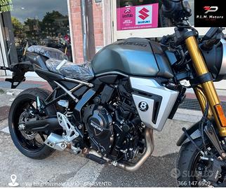 Linee classiche sapientemente unite ad elementi moderni. Un design che richiama l'iconica Suzuki T500, conosciuta anche come "Titan", prodotta da Suzuki Motor Corporation dal 1967. La GSX-8T rielabora gli stilemi del passato combinando fascino vintage, stile contemporaneo e tecnologia attuale per affermarsi come un'autentica instant classic. IL FASCINO VINTAGE INCONTRA L'INNOVAZIONE La GSX-8T è stata disegnata concentrandosi sulla rivisitazione del fascino vintage in chiave moderna. Il faro rotondo a LED trae ispirazione dal design tipico delle moto Suzuki degli anni '60 e '70. Gli specchietti bar end combinano look vintage e funzionalità raffinata. Posizionati alle estremità del manubrio, riducono l'interferenza con il corpo del pilota e migliorano campo visivo e visibilità posteriore. Le linee morbide e arrotondate del capiente serbatoio da 16,5 litri ricordano quelle dell'iconica Suzuki T500, conferendo uno stile rétro e, al contempo, una presa sicura e stabile sulle ginocchia. Esclusiva per la GSX-8T, la sella tuck and roll presenta un profilo rétro e una texture raffinata per un look e una qualità superiori. Modellata con particolare cura nella forma laterale e nel sostegno generale, offre un comfort adatto anche alle lunghe distanze. Le cover laterali del motore in finitura nera regalano un aspetto elegante e raffinato al design complessivo, esaltando i dettagli meccanici e sottolineando il carattere forte della moto. Il compatto scarico in acciaio inossidabile aggiunge un ulteriore dettaglio di qualità al look generale. Il tocco di stile finale viene dato dall'emblema GSX-8, ispirato alla palla da biliardo con il numero 8, e dallo stemma SUZUKI scolpito in 3D. La GSX-8T è dotata di una porta USB Type-C di serie, che permette di ricaricare rapidamente dispositivi elettronici come lo smartphone. Molto utile nella quotidianità, la sua compattezza si integra perfettamente con lo stile della moto. Un luminoso schermo TFT LCD a colori da 5" fornisce t