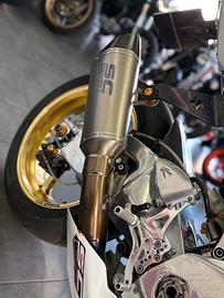 Accessori: Forcelle Ohlins, Mono Ohlins, comando gas rapido, dischi Braking Wave, pinze freno ant Brembo M4, pompa freno anteriore brembo radiale, cerchi OZ forgiati, alberi a camme Robby Moto, pistoni Wiseco, testa lavorata, corpo farfallato lavorato, cornetti aspirazione, mappa dedicata, pedane arretrate, tubi freno aeronautici, parafango ant carbonio, parafango post carbonio, staffa scarico carbonio, paracatena carbonio, fianchetti carbonio, collettori arrow modello 2017, silenziatore SC Project per Aprilia RSV4 con imbocco 60/70 mm, tubi radiatore siliconici/telaio/forcellone/piastre sterzo/link mono/pedane e telaietto tutti lucidati a specchio, particolari in ergal oro lightech , sella personalizzata, grafiche Lucky Strike.