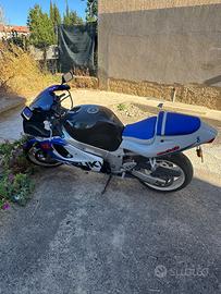 Vendo Suzuki GSX-R 600 SRAD del 1999, la moto è stata completamente ripristinata a livello meccanico e di ciclistica, forcelle revisionate, cuscinetti di sterzo nuovi, selle rifoderate con ricamo Suzuki, cupolino in plexiglass nuovo, carburatori revisionati, carburazione, impianto elettrico revisionato, tagliando completo, pompa freno nuova e tubi freno in treccia all'anteriore, batteria nuova, regolatore di tensione nuovo, dopo è rimasta ferma, non ha bisogno di nessun tipo di intervento, la moto ha solo qualche difetto estetico, viene accesa regolarmente e fatta girare.