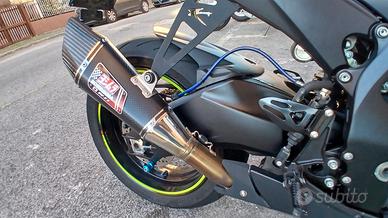 Presenta doppio scarico: quello di serie Suzuki oltre a quello Yoshimura che monta, cambio elettronico,