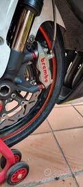 Vendo Suzuki GSX R 750 K7 Allestimento Pista con regolari documenti, targa e chiavi (e bolli sempre pagati ultimo Febbraio 2026). 19.000 km totali di cui 2.500 di pista. Accessori inclusi: - Pedane, tendicatena, semimanubri, tappo benzina, serbatoio liquido freni e sella 4 racing -Protezione motore Reg -Copritelaio, copriforcellone e copristrumentazione interamente in carbonio -Gas rapido Domino -Tubi siliconici e radiatore racing -Pinze Brembo M4 -Dischi maggiorati Breaking -Scarico completo Arrow -Pompa Brembo RCS 19 x 20 -Mono + molle pompanti Ohlins + ammortizzatori di sterzo Sachs -Doppia centralina Power Commander per iniettori alti e bassi -Cambio elettronico "rovesciato" - Avviamento On/Off Semimanubrio - Trasmissione D.I.D. -Telaietto reggisella artigianale IRC - Convogliatori aria in carbonio - Gomme Pirelli Diablo Supercorsa SC acquistate nuove nel 2025 con 4 turni (non giornate) presso circuito Vallelunga La motocicletta e' integra, abbondantemente accessoriata come si evince dalla lista e assolutamente funzionante. Presenta abrasioni a livello del cupolino e fianco destro per scivolata innocua. Non dispongo di carene originali nè fari/frecce, bensì possiedo ricambi quali leve, altri convogliatori in carbonio, cavalletti anteriore posteriore e laterale, blocchetto chiavi e altro ancora. Possibile scambio con adeguamento di prezzo con Enduro targato