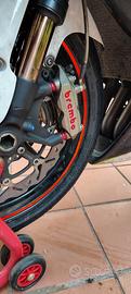 - Pedane, tendicatena, semi manubri, tappo benzina, serbatoio liquido freni e sella 4 racing