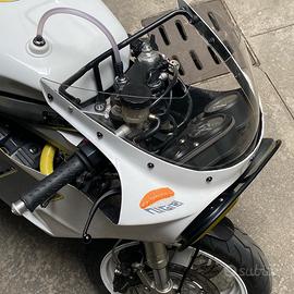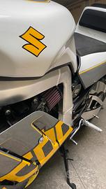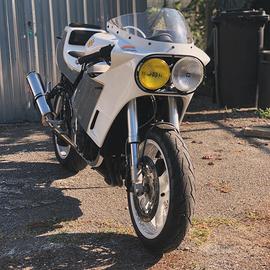 Specal / cafe racer su base Suzuki gsx-r 750 del 1994 “nigiri” Vincitrice di molti premi con servizio fotografico su giornale di settore . Trasformata in stile endurance anni 80 con i seguinti componenti: -kit carene su misura in vetriresina - verniciatura professionale e scritte fatte in pintstriping ( non adesivi ) -tubazioni acqua in silicone samco - scarico originale yoshimura sr3 - semimanubri alluminio ricavati dal pieno - comandi eletricci ed inpianto rivisto - forcelle con pompanti da pista - impianto frenante a 6 pistoncini - pompa freno radiale accossato - doppia faro anteriore esterno - kit dinojet 3 sui carburatori - filtro aria k&n - gomme nuove (fatto solo spostamenti per eventi) La moto viene consegnata tagliandata e revisionata . Visionabile presso la nostra officina
