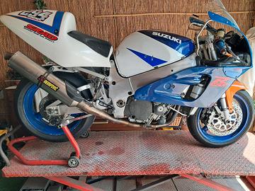 Vendo suzuki gsx r 750 1996 pronto pista per gare epoca gr4/5 con fiches fmi,mono wp,molle forcella wp/ktech,scarico completo akrapovic,pinze brembo 4p,dischi braking,pompa brembo 19x20,radiatore zxr 750. Insieme alla moto numerosi ricambi,telaio,cerchi carene carburatori centralina cablaggi ecc... No documenti radiata ad uso sportivo.
