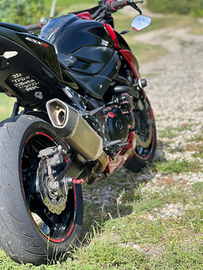 Scarico sc-project omologato, cambio elettronico, specchietti bar end omologati, viti in ergal, tamponi paratelaio, porta targa corto, monoposto