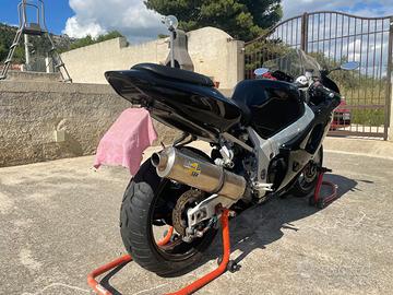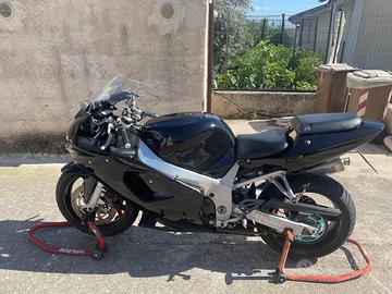 Appena riverniciata totalmente di nero adesivi ancora da installare, viti carene tutte nuove. Codone in fibra di carbonio con luce stop e frecce integrate, cupolino corsa, specchietti piccoli, frecce laterali a carena, scarico Leovinci, tubi freno corsa, corona e pignone…. Presenta piccolo problema di battito al primo cilindro, moto posata 6 anni fa in garage perfettamente funzionante quindi o piccolo problema elettrico o di condensa nel primo cilindro, disponibile anche video della moto accesa e funzionante fatta pochi giorni fa.
