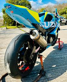 Vendo Suzuki GSX-R 1000 K5 preparata esclusivamente per uso pista, mai immatricolata, quindi senza bollo e senza pratiche burocratiche.Moto in ottime condizioni, sempre curata e mantenuta con attenzione. Tagliando appena eseguito, pronta per girare in pista. Moto completa di numerosi componenti racing di qualità: Ciclistica: Mono posteriore Öhlins Ammortizzatore di sterzo Öhlins Forcella anteriore con steli trattati TiN, appena revisionata e tarata per pilota circa 90 kg Dischi freno anteriori Braking Pompa freno radiale Accossato 19x18 nuova Pinze freno anteriori Accossato nuove Tubi freno in treccia Accossato anteriori e posteriori nuovi Elettronica: Cambio elettronico IRC SGRace Traction control Gripone S3 con piattaforma inerziale controllo di trazione su ruote anti-wheelie pit limiter Centralina aggiuntiva Rapid Bike 3 Cronometro GPS Starlane Motore e raffreddamento: Scarico completo in titanio Arrow Serbatoio trattato con Tankerite Tubi radiatore in silicone Rossi nuovi Carrozzeria e accessori: Carene in vetroresina appena verniciate con sganci rapidi Cupolino doppia bolla Sella pista in neoprene Protezioni telaio e motore in carbonio Protezioni leve freno e frizione Leva frizione Accossato Pulsantiera racing Gomme: Pirelli Supercorsa V2 nuove (DOT 2025) anteriore SC1 posteriore SC2 Moto molto divertente e affidabile, uno dei migliori motori della categoria, perfetta per track day o uso pista. SCAMBIO o permuto con auto munita di gancio traino / prototipo / formula / kart cross No perditempo no affaristi