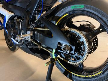 Vendo Moto Suzuki GSX-R 750 K6/K7 Moto targata (bolli tutti pagati anche il 2025)/26) quindi necessita passaggio, messa solo per pista nessuna parte originale. Svariati accessori pompa freno brembo, gas rapido mono gubellini, forcelle e mono appena revisionati. Motore originale con solo filtro racing, gruppo trasmissione nuovo did,vedi foto, rapporto originale più corona da 47 denti. Gomme V2 Pirelli SC2 nuove appena montate. Pronta per scendere in pista e divertirsi. Comprese due termocoperte JMP (anteriore non funziona il led ma scaldano). Vendo per motivi famigliari/salute, ero pronto per la nuova stagione ma è saltato tutto e le probabilità di tornare in pista sono molto basse. Prezzo trattabile