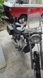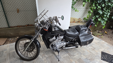 Borse laterali in cuoio. Moto da passeggio e facilissima da gestire.
