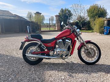 GUIDABILE CON A2 Vendo a malincuore la mia bellissima Suzuki intruder 600 a carburatori. La moto ha trasmissione a cardano, monta inoltre scarichi silvertail muniti di dbkiller, davanti monta una gomma Dunlop 100/90-19 e nel posteriore una Michelin 140/90 B15 cambiata a marzo 2025 per avere una maggiore sicurezza su strada in quanto la sua era consumata. La moto principalmente l'ho acquistata per approcciarmi al mondo custom considerando che ho patente A2 è una delle poche che sono riuscito a trovare in tutta la zona. Ora purtroppo la vendo a causa di passaggio a cilindrata superiore e cambio di stile.. Lavori che ho eseguito in 1 anno di tempo: Cambio gomma posteriore Revisione entro marzo 2027. Rifoderamento di entrambe le selle Tagliando eseguito 5000 km fa Ricolorato serbatoio poiché era pieno di graffi ed era stata applicata dal proprietario precedente una targhetta. la moto comunque presenta dei graffietti ovviamente del tempo...ho sistemato solo i particolari che personalmente mi davano più fastidio. Inoltre la moto è munita di sissibar e di borsello porta attrezzi originale, bollo pagato con scadenza a fine anno. per chi vuole vendo anche borse con un piccolo costo aggiuntivo di 400€ in cuoio complete e messe come nuove. Non è possibile la prova su strada a causa mancata assicurazione attiva. Passaggio e trasporto a carico di ci compra.