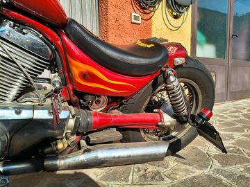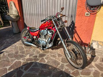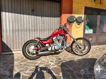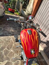 Intruder 750 appena tagliandato, revisione fatta nel 2025, gomme nuove. Modifiche: prolunghe forcelle, drag bar, targa laterale, monoposto, più quello che si vede in foto... Perfettamente funzionante, sempre usata. Da carburare perché filtri aria liberi