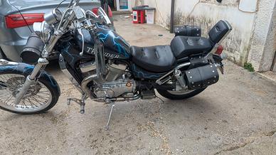 Suzuki Intruder 800 – 1993 – Custom Thunder – 49.000 km Prezzo 3000€ Descrizione: Classica cruiser con motore V-Twin 805 cc raffreddato ad aria ( e liquido), trasmissione a cardano, famosa per affidabilità e guida comoda. Moto con verniciatura custom “Thunder” con grafica fulmine che la rende particolare e riconoscibile. Una moto dal carattere vero: posizione di guida bassa, sound pieno e stile chopper anni ’90. Caratteristiche Anno: 1993 Chilometri: 49.000 km Motore: 805 cc V-Twin Trasmissione: cardano Raffreddamento: aria Categoria: cruiser / custom Moto storica (oltre 30 anni), ideale per appassionati di cruiser classiche. 📍 Visionabile su appuntamento. Contatto in privato per ulteriori informazioni.