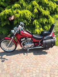 Moto Custom tagliandata e con documenti e revisione in ordine, iscritta ASI con vantaggio per bollo e assicurazione. Tenuta in maniera impeccabile,SOSTITUITO pompa acqua, fatta revisione completa forcella anteriore con sostituzione boccole+molle+paraolio, sostituiti ammortizzatori posteriori con nuovi regolabili, gomme e batteria in ottime condizioni, rifatte completamente sella guidatore e passeggero in pelle. ACCESSORI borse laterali, fascia serbatoio con tasca e borsello faro anteriore fatte in pelle artigianalmente con motivo "Charro" , inserite estensioni pedane passeggero e creato artigianalmente schienalino sissybas tutto cromato. (Tutte le modifiche sono state fatte senza modificare la moto o gli acessori originali tutti disponibili). Disponibile seconda chiave e manuale di manutenzione. Vendo a malincuore per inutilizzo ad appassionato.