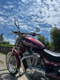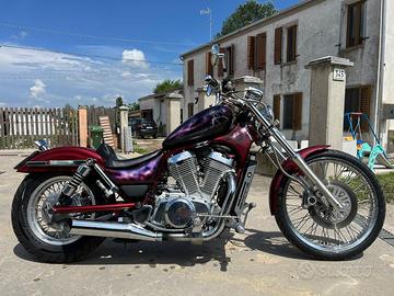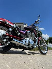 Vendo come da titolo Suzuki Intruder Vs 800 del 1999, moto perfetta usata pochissimo con 7.000 chilometri. La moto è stata revisionata e tagliandata agosto 2024, gomme nuove dello stesso periodo. Vendo per inutilizzo/futuro cambio moto, la moto in questo momento si trova nella configurazione originale in tutto, attualmente circolante. Insieme alla moto cedo anche: - cerchi custom sia posteriore che anteriore con il suo parafango custom - specchietti custom - terminale di scarico aperti (montati adesso sulla moto, non in foto) - pinza freno La carrozzeria della moto è stata customizzata completamente da carrozziere con aerografo con una livrea come in foto. Vendo a 5000 ¤, il prezzo può sembrare un po' alto ma la moto ha davvero pochi chilometri è stata usata pochissimo per vent'anni ed è stata poi revisionata e tagliandata da meccanico qualificato. Sono inoltre primo e unico propietario. Primo contatto su subito e poi su whatsapp. Sono disponibile per qualsiasi richiesta e informazione.