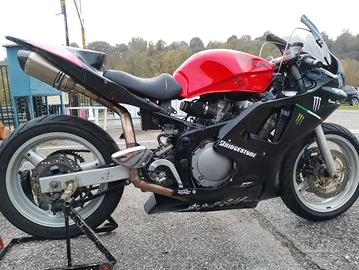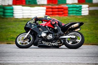 Suzuki Katana GSX 600 RADIATA con documenti radiazione (NO VOLTURA, NO BOLLO), pronta all'uso, allestita da pista, moto perfetta per chi vuole iniziare ad andare in pista o per allenamento senza spendere troppo. Alcuni dettagli: -Scarico unico nel suo genere costruito su misura -Filtri singoli con condotti a lunghezza differenziata -Carburatori completamente revisionati e tarati -Ricarburata con getti maggiorati appositi -Pompa benzina a depressione maggiorata Mikuni -Telaio accorciato, modificato ed alleggerito -Impianto elettrico semplificato e ridotto al minimo indispensabile -Forcelle revisionate e tarate con molle lineari e olio Racing 20w -Semimanubri racing -Pacco frizione modificato e alleggerito -Dischi frizione EBC Racing con molle Versah rinforzate -Olio freni RBF 700 -Tubi in treccia -Tagliando completo con all'attivo 2 uscite -Carene in vetroresina Yamaha R1 e codone R6 Verrà venduta con gomme in mescola SC2 No perditempo, disponibile a qualsiasi prova. Prezzo trattabile dopo visione. Accetto anche scambi con moto RADIATE di mio gusto.