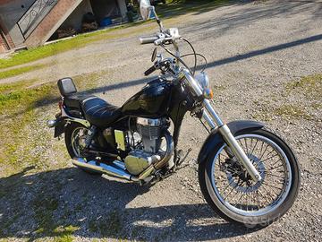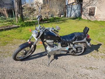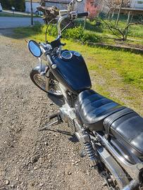 Moto stile chopper iscritta al registro storico, da questo anno esente bollo. Carrozzeria in buone condizioni, sempre stata in garage, motore ottimo con fasce e valvole rifatte a 34.000km, gomme anteriore 60% e posteriore 80%. Insieme lascio il tronchetto per manubrio sportivo come da foto, un serbatoio preso in demolizione per costruirne uno nuovo e borse morbide in tessuto.