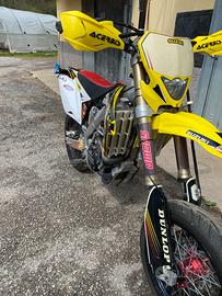 Suzuki 450 rmx Moto targata con tripla omologazione Svolti vari lavori come. - pistone e lucidatura cilindro - tagliando completo + gioco valvole - pastiglie sia anteriori che posteriori - pulizia serbatoio + iniettore - gomme al 70% circa Insieme alla moto cedo. -coppia di cerchi da enduro -corona nuova - parafango anteriore da enduro -Porta pinza freno anteriore da enduro Moto in ottime condizioni, cedo per inutilizzo Prezzo trattabile dopo visione