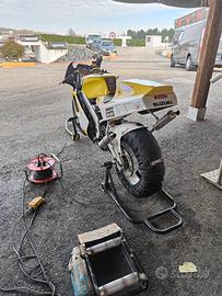 Pronto gara, motore preparato da Tesori, teste e valvole michelotto, cambio micozzi, doppi cerchi tre coppie di marmitte Tyga e due jolly moto, carene in vetroresina di scorta, molti altri ricambi.