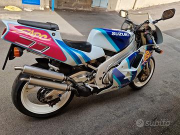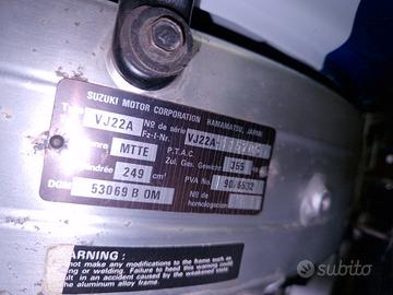 Suzuki RGV 250 VJ22 "Gamma " Aprile 1992 iscritta ASI a libretto, km circa 15000*, gommata Dunlop Sportsmart 90%, catena, corona, pignone, nuovi; cuscinetti cannotto di sterzo nuovi; forcella anteriore e mono posteriore revisionati; pasticche freno nuove; motore rifatto con circa 1000km di utilizzo; serbatoio trattato con tankerite; scarichi originali Suzuki quasi introvabili.