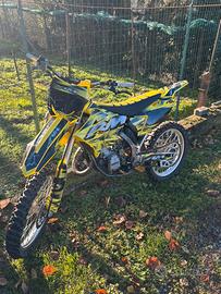 La moto si presenta perfettamente funzionante, é sfatta data una pulizia e una sistemata generale all'intera moto; sono stati sostituiti: manubrio, leva freno, comando acceleratore, pastiglie freni, pedane, pedalina freno posteriore, pedalina cambio, kit restyling polisport+grafiche, copertina sella e filtro nuovo.