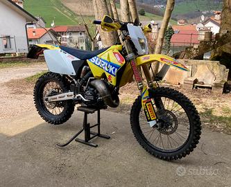Salve, vendo a malincuore splendido Suzuki RM 125 d’importazione ufficiale dal Giappone, targato, fine serie anno 2008, con doppia omologazione a libretto enduro/cross. Moto completamente rifatta da zero: motore e ciclistica revisionati integralmente con ricambi originali. Nessun lavoro da fare. Motore rifatto (biella, pistone, cilindro, cuscinetti, guarnizioni, paraoli ecc.), frizione nuova, trasmissione nuova, olio motore e liquido refrigerante appena sostituiti, copertoni nuovi al 100% METZELER 6Days Extreme, pastiglie freni ok, paracolpi e protezioni telaio in vero carbonio. Inclusi: doppi cerchi posteriori originali omologati a libretto (già gommati), cilindro originale aggiuntivo da ricromare, fatture dei lavori e vari ricambi. La moto parte al primo colpo, gira perfettamente ed è estremamente performante: motore grintoso e sempre pronto. Tenuta in modo maniacale da appassionato adulto. Mai pista. Modello molto raro, destinato ad aumentare di valore nel tempo. No perditempo. Contattare solo se realmente interessati.
