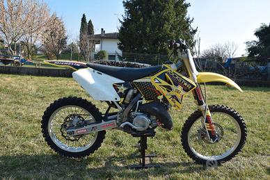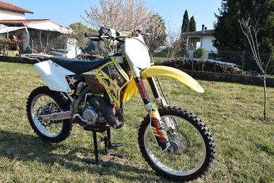 Vendo per conto della famiglia del mio defunto amico Suzuki rm 125 del 2003, non targata. La moto è stata comprata con l'intenzione di rifarla da capo a piedi e godersela, infatti ha subito numerosi interventi, cr tra i quali: - Cilindro preparato da Novarcross yz appena ricromato - Testa SRS rifatta completamente da preparatore di motori kart - Pistone nuovo - Biella wossner nuova - Cuscinetti di banco koyo nuovi - Candela kx - Disco posteriore nuovo - Filtro aria nuovo - Trasmissione nuova Ognibene Da finire di rodare. Assieme alla moto si cedono seconda forcella Showa 47 (non vendo separatamente) + eventuali accessori (plastiche aggiuntive ecc). Offro e pretendo massima serietà.