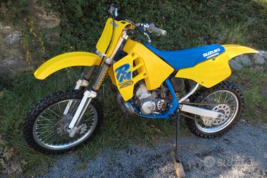 Vendo suzuki rm 250 del 90 con documento d'origine piu' eventuale kit enduro con documenti, inutilizzata da 15 anni, 50 ore circa reali, 23 anni fa e' stato effettuato un restauro conservativo completo e utilizzata 5-6 volte e inutilizzata da 20 anni solo accesa ogni tanto, INTROVABILE IN QUESTE CONDIZIONI, fornisco kit pistone e guarnizionie ricambi vari, per tutte le altre informazioni SOLO CONTATTI TELEFONICI AL 3337479434, NON RISPONDO A MAIL O SMS.