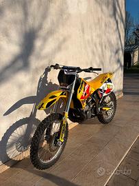 Come da titolo vendo suzuki rm250 del 1995. La moto è in ottime condizioni, vendo solo per poco utilizzo, sempre usata qui nei campi vicino a me. Da pochissimo è stato sotituito: Disco e pastiglie poteriori Camera d’aria rinforzata posteriore Kit catena corona e pignone Kit di tenuta paraolio pignone Olio cambio Pastiglie anteriori Il motore ha circa 35 ore da quando è stato fatto pistone e biella, presente anche il contaore per comodità. Il tutto è perfettamente funzionante e non ha nessun tipo di problema, non perde una goccia e si accende subito sempre. No perditempo o giri turistici. Cross motocross 125 250 300 450 cc sx kf cr