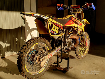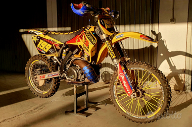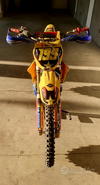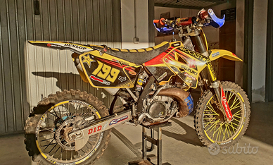 Vendo a malincuore per inutilizzo la mia splendida RM 250 2t 2001. Moto semirestaurata, motore rifatto (rettifica cilindro, pistone, fasce, cuscinetti di banco ecc) appena 6 ore di utilizzo (un' uscita) plastiche nuove trasmissione e freni nuovi ecc ecc più svariati accessori. Moto che più passa il tempo più aumenta di valore se conservata bene.
