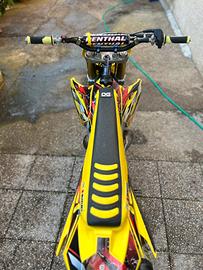 Vendo a malincuore bellissima Suzuki RM 250 (Valenti Racing) anno 2005, in condizioni eccellenti. La moto è regolarmente targata e possiede la doppia omologazione (Enduro e Motard) La moto è stata oggetto di un restauro completo e ha all'attivo solo 10 ore di utilizzo (fine rodaggio). Motore rifatto completamente con componentistica Vertex (pistone, biella, cuscinetti e guarnizioni). Carburatore completamente revisinato, Gira come un orologio. Scarico completo MESSICO (Artigianale) Gomme nuove Forcelle revisionate Showa Sella Blackbird double grip 3 Cerchio 19 (disponibile anche cerchio 18) Manubrio Renthal con rialzi Dispongo anche di altri pezzi come plastiche originali, manubrio originale, cerchio 18, fari, paramotore artigianale, scarico originale, cavalletto ecc… Vendo per inutilizzo. Valuto scambi.