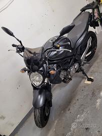 Tenuta con cura e pronta all'uso, motore bicilindrico a V e ciclistica della sorella SV650, allestimento total black, cupolino, manubrio nero, mono bitubo, scarico GPR, paramotore, nottolini, catena corona e pignone e gomme montati pochi km fa. Moto adatta a tutti e facile da gestire anche come costi. Secondo proprietario e attualmente in uso. Valuto permuta con con f900r, gsx-8s, cb650r, trident 660 e simili. Abbasso il prezzo che ho fatto il preventivo per la nuova e voglio vendere.