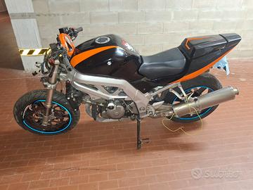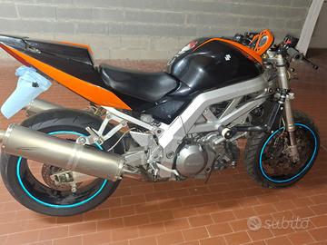 Vendo Suzuki SV 1000 del 2004, 65000 km incidentata a 800 euro trattabili. La moto si accende. Le forcelle sembrano apposto e sono di un GSX-R del 2002 (in caso ho anche uno stelo completo). I tubi dei freni in treccia hanno un raccordo da sostituire. Uno dei due dischi freno è da cambiare e bisogna cambiare anche il cerchione che è di un GSX-R. Il mono dietro è un WP. Il manubrio, la strumentazione, il radiatore e una pedana sono da cambiare. Uno dei raccordi dello scarico è schiacciato in un punto come da foto e le due marmitte, Arrow, sono graffiate. Le gomme sono quasi nuove e utilizzabili al 90 %. Se si è interessati o per altre informazioni si prega di scrivere su WhatsApp al numero 335306793