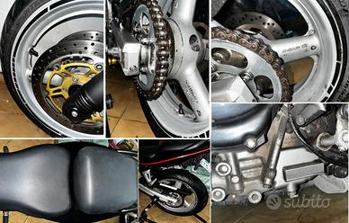 Occasione imperdibile per appassionati! Vendo Suzuki SV 650 del 2001, modello Naked con solo 6.229 km sul contachilometri (sostituito a meno di 6.000 km, chilometraggio attivo circa 12.000 km). Moto storica iscritta all'A.S.I., con riduzioni sul bollo e sull'assicurazione (meno di 100 euro annuali). In condizioni impeccabili, sempre custodita in garage, con libretto originale di manutenzione Suzuki (.. che non è poco). Caratteristiche: Peso: 170 kg, Motore bicilindrico a V da 72 CV, Tagliandata filtro, olio Motul 7100, candele, liquido refrigerante, Revisione scad. luglio 2025, Pneumatici al 80%, pasticche ok, catena e corona ok, paramotore, pedale del cambio sport, specchietti a goccia scuri sportivi, faro e fendinebbia a LED, cupolino scuro, manopole black, contachilometri modulabile con varie illuminazioni, frecce direzionali tipo sport, porta-targa con illuminazione LED, doppia sella (originale + modello sport), batteria ok. Includo marmitta originale e adesivi per il serbatoio.