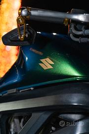 la moto è depotenziata a libretto quindi quidabile con patente a2. Suzuki sv 650 2006 con 69.000km alla quale sono stati cambiati radiatore con uno maggiorato, motorino d'avviamento. revisione completa frizione a 60.000km con dischi cambiati. lampadina a led d-lumina da 8000 lumens, batteria maggiorata da 200 cca, frecce led anteriore e posteriore nuove,serbatoio nuovo privo di rugine, manubrio nuovo oro, pedalina cambio e pilota, vernice completa premium super camaleonte verde/blu con ricostruzione plastiche, gomma posteriore angel st nuova. anteriore al 60%. cambiato filtro aria candele, revisione completa pipette, corpi farfallati primari e secondari, regolazione tps, revisione iniettori, revisione sospensioni fatta a maggio 2025 fatto baypass al filtro interno della pompa con conseguente installazione di un filtro a pressione esterno così ora per cambiare il filtro basta smontare due clip di metallo e non cambiare l'intera pompa benzina, la moto è stata portata allo stato ottimale NON C'È NESSUN LAVORO DA FARE PER POTER CAMMINARE. PREZZO TRATTABILE