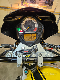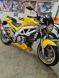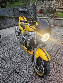 Naked Suzuki sv650 del 2005, tagliando completo appena fatto, bicilindrica a V con svariati pezzi aggiunti; cupolino nero, scarico completo omologato della Fresco, puntale, coprisedile passeggero, parafango sottocodone, nuova sella, portatarga, frecce led omologate, specchietti, bulloneria in ergal azzurra, manubrio rizoma, nessun lavoro da fare, coppia divertente a bassi giri e consumi ridotti, pronta per partire, gomme al 90%, dispongo inoltre di tutti i pezzi originali, compreso lo scarico originale, vendo per inutilizzo, prezzo leggermente trattabile