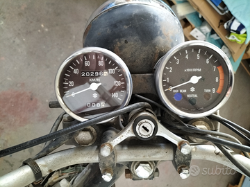 Suzuki TS 250 2 tempi del 1977, privo di documenti, appena sostituite candela e olio motore. Negli anni sono stati applicati più stati di vernice, per questo motivo i fianchetti e il serbatoio sono stati sverniciati pronti per riverniciare. Solo da carburare; molto bella e divertente, con sella lunga con pedaline per passeggero.